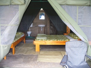 dem Nord-westlichen Eingang Matambwe Tor im Selous Reservat. Die Grenze des Selous Reservat zieht sich direkt hinter dem Lagergelände entlang. Das Camp startet mit fünf Zelten wie die, die im